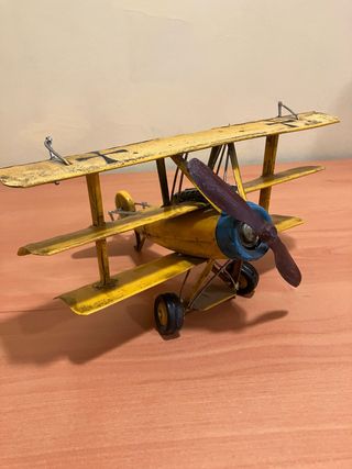 Réplica detallada de un avión triplano Fokker DR1. - Diseño clásico de biplano. - Metal - Ruedas de aterrizaje.