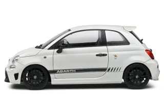 Maqueta de metal del Abarth F595 del 2022 en color blanco, en escala 1/18 del fabricante Solido. Totalmente nuevo sin exponer, con su caja original. La dirección es practicable. Apertura de puertas. Interior muy detallado.