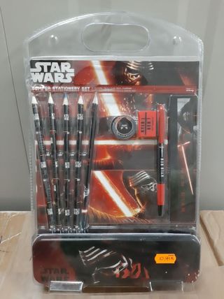 Vendo maqueta de la nave TIE (Twin Ion Engine) Fighter, junto con un set de papelería de Kylo Ren, todo de la saga "Star Wars". El kit de modelismo es apto para niños a partir de los 10 años y NO INCLUYE ni las pinturas ni la cola, aunque indica los materiales y colores recomendados para su montaje. El set de papelería incluye 4 lápices de colores, un lápiz de grafito, un sacapuntas, una goma de borrar, un bolígrafo, una regla, un estuche metálico y un cuadernillo de ejercicios. Todos son productos oficiales y están en sus envoltorios originales. Comprando 2 o más artículos de mi perfil hago descuento.