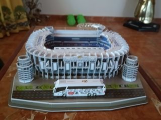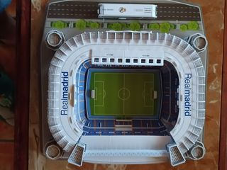 Espectacular maqueta del Estadio Santiago Bernabéu del Real Madrid, en 3D. Guardada en vitrina y montada con mucho cuidado. - Es un puzzle de piezas encajables. - Incluye un autobús del Real Madrid. - Perfecta para coleccionistas o aficionados al fútbol.