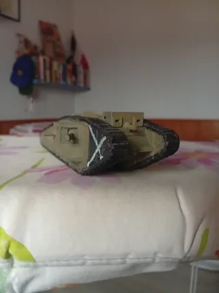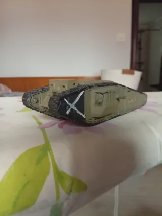 Réplica detallada del Tanque Mark V a 28mm. - Diseño militar histórico. - Color verde oliva con marcas blancas.