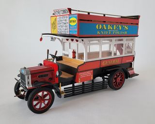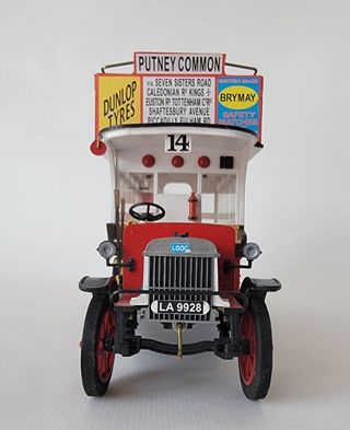 Réplica detallada del autobús de Londres de Occre, modelo 57000. Maqueta ya construida. Longitud: 290 mm. Escala: 1/24 - Diseño clásico de dos pisos. - Pintura roja y negra. - Detalles de publicidad en los laterales y la parte superior. Las fotos son parte de la descripción.