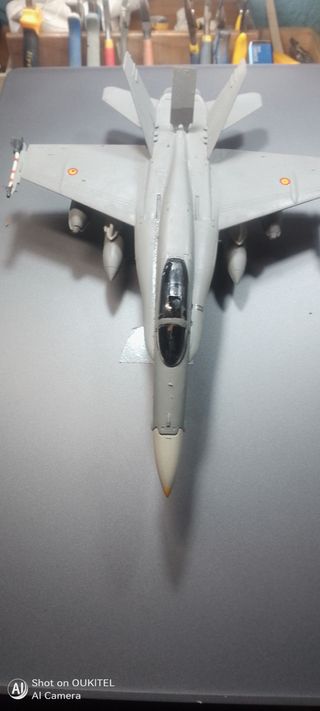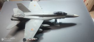 Maqueta a escala 1/72 del caza F/A-18 Hornet. Decorado con las insignias del Ejercito Español del Aire.La maqueta es una gran maqueta realizada profesionalmente ya que yo me de dico a este mundo del modelismo y está realizada con los mejores productos como pegamentos, masillas realizada con las mejores herramientas que puede haber en el mercado y pintada con las mejores pinturas del mercado usando el aerógrafo y como e dicho el diseño es el de el Ejercito Español del Aire muy bonito - Marca: Hobby Boss. - Modelo: F/A-18 Hornet. - Escala: 1/72.