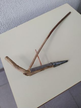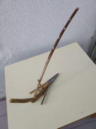 Arado en miniatura hecho a mano con madera. Ideal para decoración o maquetas. - Material: Madera. - Diseño rústico y sencillo. - Perfecto para coleccionistas.