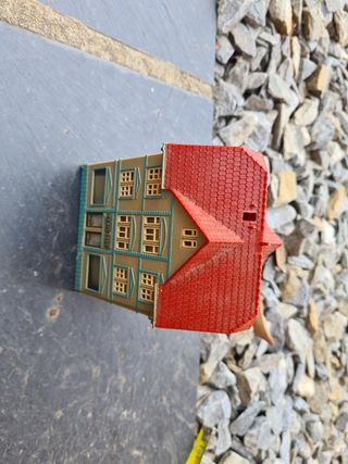 edificio para maquetas escala h0. esta bien conservado solo tiene una puerta rota que se puede pegar o reparar, se ve en fotografia.