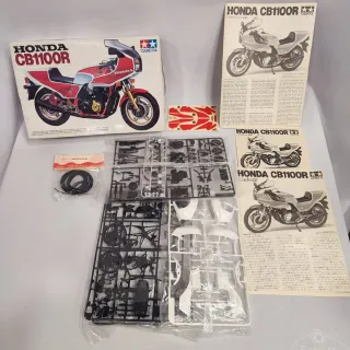 Maqueta a escala 1/12 de la icónica Honda CB1100R de Tamiya. Un modelo detallado para coleccionistas y aficionados a las motocicletas. - Neumáticos de goma realistas con patrón de banda de rodadura preciso. - Motor DOHC de 4 cilindros altamente detallado. - Incluye líneas de freno e ignición. - Requiere montaje, ideal para modelistas. Vintage miniatura old SCHOOL colección retro