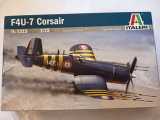 Maqueta del caza naval F4U-7 Corsair, versión empleada por la marina francesa en los conflictos de Argelia y Suez (Italeri a escala 1:72). Incluye calcas para 3 versiones. El kit está dentro de su bolsa sin abrir y en perfecto estado. NO SE ADMITEN OFERTAS.