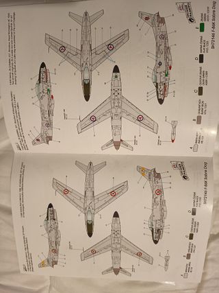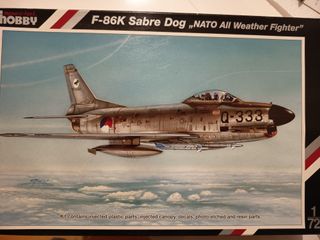 Maqueta del avión F-86K Sabre Dog, NATO All Weather Fighter. - Kit completo con todas las piezas dentro de la bolsa sin abrir; calcas en perfectas condiciones. NO SE ADMITEN OFERTAS. - Incluye piezas de plástico inyectado, canopy inyectado, calcas, fotograbados y piezas de resina.