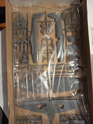 Maqueta de plástico Supermarine Spitfire Pee Wee UPC pocket series 8053 19 Antiguo, tiene unas calcomanías, la caja y las distintas partes del avión No soy entendido pero viendo la parte de atrás (foto 3) entiendo que se compone de base principal, alas, parte de la cola, hélice, 2 ruedas, 2 piezas más de plástico, una transparente y peana con soporte, de ser así estarían todas las piezas. No sé si originalmente tendría algo más, de ser así no lo incorpora, eso es todo lo que tengo de el. IMPORTANTE. La helice tiene rota un haspa, foto 2, está dentro de la bolsa de plástico, habría que pegarla.