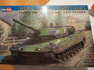 Maqueta a escala 1:35 del tanque Leopard 2 A5 DK de Hobby Boss. Incluye 308 piezas de plástico. NO SE ADMITEN OFERTAS. - Longitud: 294mm - Anchura: 110mm - Altura: 85mm