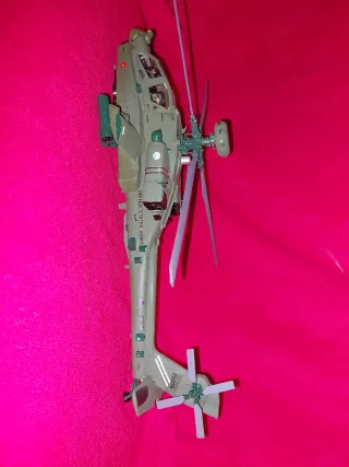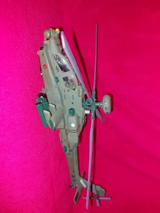 Maqueta detallada de un helicóptero Apache a escala 1:48. Montado y pintado - Réplica del helicóptero militar. - Pintura en tonos verdes y detalles en rojo. - Incluye armamento simulado. Entrega en torrejon de ardoz la Gavia o Valdemoro Eurocopter Boeing ec-135 havok cobra Tiger augusta