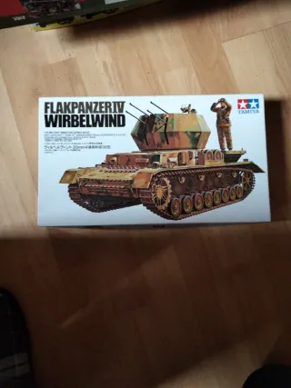 Maqueta de Tamiya del Flakpanzer IV Wirbelwind. - Modelo a escala. - Réplica detallada del vehículo. - Incluye figura de soldado.