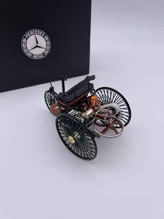 El Benz Patent Motorwagen, patentado por Carl Benz en 1886, es considerado el primer automóvil diseñado como tal y no un carruaje adaptado. Esta maqueta reproduce con detalle su aspecto original, homenajeando un invento que revolucionó la historia del transporte y la ingeniería. Detalles: - Escala: 1:18 - Material: Moldeo por inyección de metal - Maqueta de precisión montada a mano - Made for Mercedes-Benz by Norev - Num. de Item: B66041415 - Colección: Mercedes-Benz Classic La maqueta esta nueva a estrenar, impoluta. Envoltorio y caja originales, solo sacada de la caja para hacer las fotos. PRECIO P.V.P: 145,02€