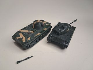 Tanques eko pt76 y m-41.El precio es por el lote de dos.El pt-76 tiene el cañon partido y una pequeña marca de pegamento en la cubierta del motor.Se vende lo que se ve en las fotos y tal y como se ve en las fotos, si necesita más fotos pidamelas, las fotos son parte de la descripción, tengo más lotes como este en mi perfil. Roco minitanks, ho,1/88,maqueta