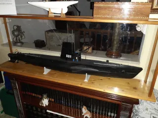 Réplica a escala del submarino Almirante García de los R. con la designación S31. - Modelo de submarino. - Color negro. Escala 1:72 realizado sobre plano, quilla, cuadernas, etc.