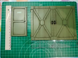 TODO LO QUE SE VE EN LAS FOTOS Extintores llamador, botiquín, Set de puertas para maquetas y dioramas a escala 1:18. Perfectas para añadir un toque realista a tus proyectos. - Puerta individual con señal SALIDA. - Puertas dobles con diseño reforzado y cierres. - Color verde militar desgastado.