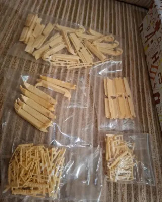 Tren en piezas con pegatinas y utensilios para confeccionar maqueta
