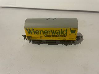 Vagón de tren en escala H0 con la decoración de Wienerwald. - Color amarillo con techo gris. Roco, marklin,mehano,electrotren, ibertren,piko - Detalle de Wienerwald Gastlichkeit y logo. - Réplica detallada para maquetas. Se vende lo que se ve en las fotografías