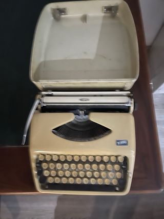Maquina de escribir antigua de marca Olympia, modelo Mónica, en perfecto estado, tanto estético cómo de uso. Incluye su estuche original y manual de instrucciones.