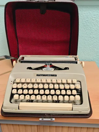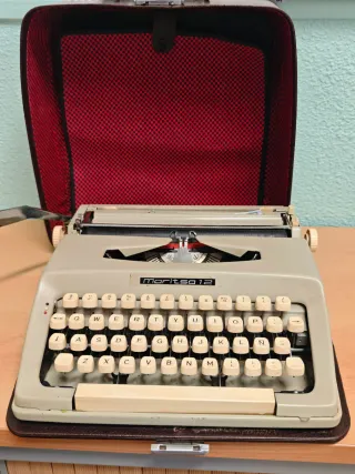 Máquina de escribir Maritsa 12 en su maletín original. Un clásico para coleccionistas o amantes de lo vintage. - Modelo: Maritsa 12 - Color: Beige - Incluye maletín de transporte con forro interior a cuadros rojos.
