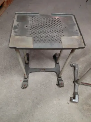 Se venden dos soportes metálicos para máquinas de escribir antiguas. Son robustos y estables. - Material: Metal - Color: Gris - Incluye 2 unidades