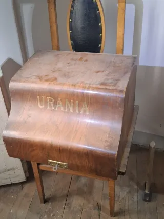 Máquina de escribir mecánica de la marca URANIA, modelo de coleccionista. Se entrega con su cajón de madera original. Fabricada por Clemens Müller A.G. Dresden. Medidas 65X45×30, peso 20 Kg. Se entrega en mano en Valladolid o Ávila.