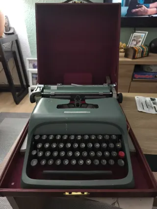 Disponible solo con envío wallapop. Precio rebajado. Las teclas funcionan correctamente. Está muy muy bien cuidada y en un estado muy muy decente, como se puede ver en las fotos; no obstante, seguro que un mantenimiento y engrasado no le vendría mal, debido a que hace años que no se usa. Evidentemente y por el paso de los años, habría que cambiar el cartucho con la cinta de la tinta, porque está seco. Con la máquina se entrega el cartucho original que tengo, que insisto, está seco y SIN tinta...