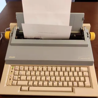 Máquina de escribir Olivetti ET Personal 55. - Diseño clásico en color gris y crema. - Teclado QWERTY completo. - Incluye papel con texto impreso. -Funciona perfectamente