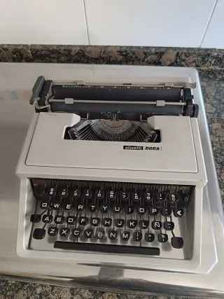 Máquina de escribir antigua de la marca Olivetti, modelo DORA. Un clásico para coleccionistas o amantes de lo retro. - Diseño vintage. - Teclado QWERTY.