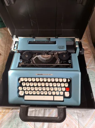 Máquina de escribir Olivetti azul con maletín
