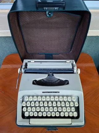 Vendo icónica máquina de escribir Olivetti Studio 46 en su distintivo color azul. Diseñada por Mario Bellini, es un modelo robusto, fiable y muy buscado por coleccionistas y escritores. Estado: Muy bien conservada estéticamente. Las teclas funcionan con suavidad. Extras: Incluye su maletín de transporte original con el patrón de logos de Olivetti (difícil de encontrar en este estado). Teclado: Versión en español (incluye la tecla Ñ). Ideal para: Uso retro, decoración vintage de oficina o regalo especial.