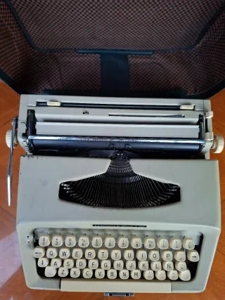Máquina de escribir portátil Olivetti Lettera 35. Un clásico del diseño italiano, perfecta para coleccionistas o para quienes buscan una experiencia de escritura única. - Color beige. - Incluye su maletín de transporte original.