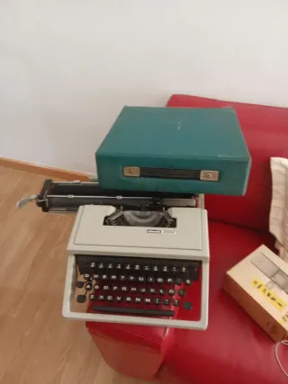 Vendo maquina de escribir portátil Olivetti Dora en su estuche de transporte original. Es un modelo clásico , popular en las décadas de 1970 y 1980. Su diseño compacto y su estuche rígido la hacen ideal para coleccionistas o como objeto decorativo vintage. Envio a toda España, escucho ofertas.