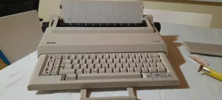 Máquina de escribir eléctrica. - Diseño clásico y funcional. - Teclado QWERTY. - Se suministra con maletín y carcasa