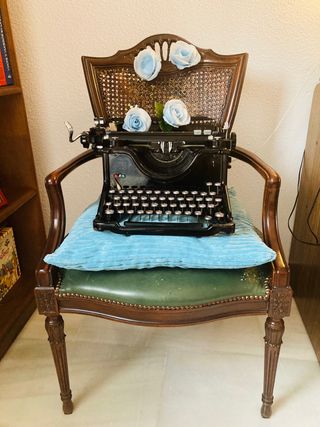 La máquina de escribir antigua es una Hispano Olivetti M40, fabricada en España en los años 30. Es un modelo de máquina de escribir con teclado, no de índice. El cuerpo es de hierro fundido. Presenta un carro cilíndrico móvil y teclas circulares. Su estado de conservación es casi impecable, siendo una antigüedad