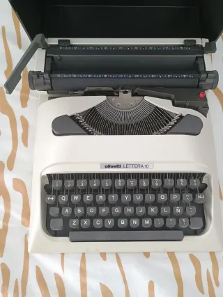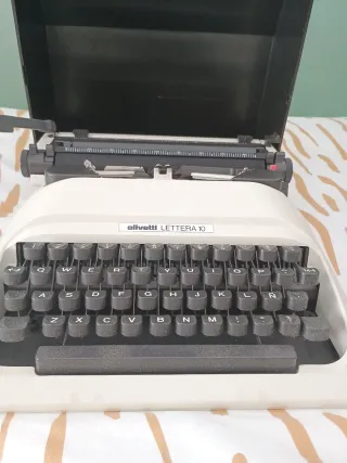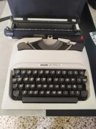 Máquina de escribir Olivetti Lettera 10 original, un clásico del diseño italiano, ideal para coleccionistas, decoración vintage o uso creativo. ✔️ Modelo portátil ✔️ Teclado español (con Ñ) ✔️ Incluye tapa rígida original ✔️ Buen estado general, con marcas normales del paso del tiempo ✔️ Estética icónica Olivetti, muy valorada en decoración y coleccionismo Ha estado guardada con cuidado. Perfecta para: • Coleccionistas • Atrezzo • Decoración retro • Escritores y amantes de lo analógico 📍 Entrega en mano o envío por Wallapop.