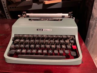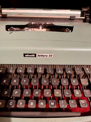escribe tu próxima novela de éxito en esta máquina de escribir portátil Olivetti Pluma 22 en color verde. Un clásico del diseño italiano, ideal para coleccionistas o para quienes buscan una experiencia de escritura única como muchos escritores famosos, viene con estuche - Modelo: 22 - Marca: Olivetti - Color: Verde - Incluye maletín de transporte. tiene todas las teclas y funciona únicamente habría que revisar el carro