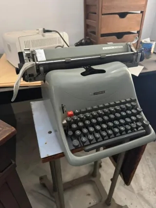 Conjunto de máquinas de escribir antiguas, perfectas para coleccionistas o como piezas decorativas. - Incluye varias unidades de diferentes modelos y marcas. - Diseño clásico y retro. - Ideales para ambientación o exhibición. Colección de máquinas de escribir antiguas: 1.Olympia Traveller de Luxe. 2.Olympia SM9. 3.Smith Premier No. 10 4.Adler Universal. 5.Olivetti Lexicon.