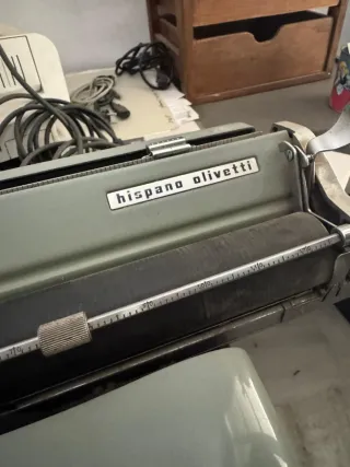 Máquina de escribir antigua Hispano Olivetti Studio 46, fabricada en Barcelona, España. Un clásico para coleccionistas o para dar un toque vintage a tu espacio. - Modelo: Studio 46 - Fabricante: Hispano Olivetti, S.A. - Lugar de fabricación: Barcelona, España - Teclas con doble función: Mayúsculas y minúsculas. En Almería