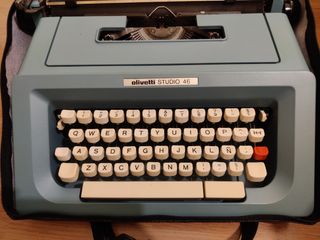Máquina de escribir de los años 80, Olivetti modelo Studio 46 en un llamativo y bonito color azul celeste. En buen estado de conservación.