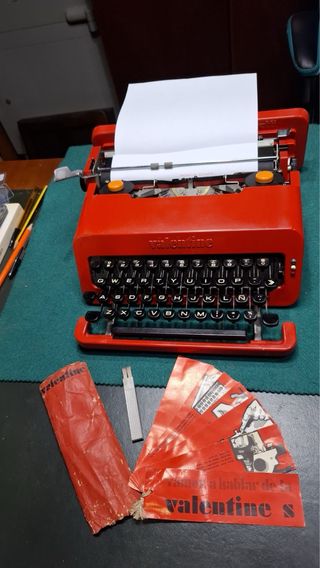 Máquina de escribir Olivetti Valentine original de color rojo y del año 1969. Diseño icónico italiano creada por Ettore Sottsass y en muy buen estado de conservación. Toda una joya! Teclado QWERTY, funciona perfecta. Ideal para coleccionistas o nostálgicos de la marca.