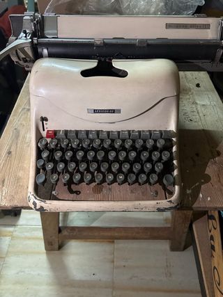 Máquina de escribir antigua de color beige. Un objeto clásico para coleccionistas o para dar un toque vintage a tu espacio. - Diseño retro. - Teclado completo.