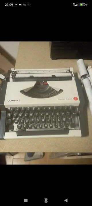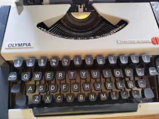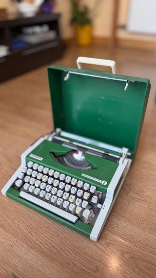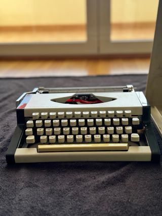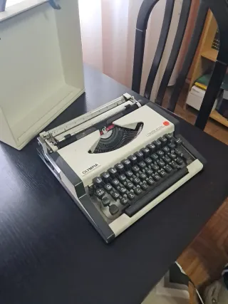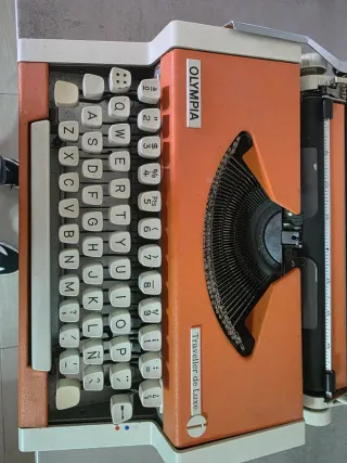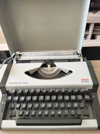 Vendo mi máquina de escribir AEG OLYMPIA TRAVELLER DE LUXE de 1992. La usé 2 o 3 veces de pequeño. Pero como me aburría, le forcé un poco 4 o 5 brazos de las letras y habría que regularlos. Pero, por lo demás, está nueva.