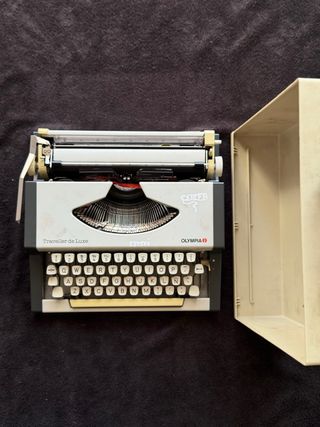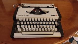 -Máquina de escribir portátil Olympia Traveller de Luxe. -Incluye manual de instrucciones en castellano. -Util como material de escritorio o para coleccionistas. -Muy poco utilizada. -Fácilmente transportable.