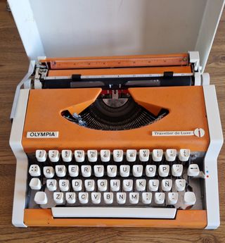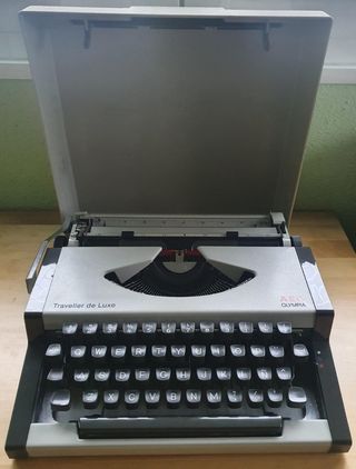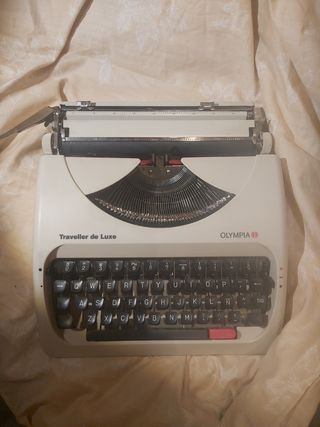 Está en muy buen estado y funcionando. Es de los años 70. Es una maquina especial porque al comprarla se pidio cambiar una tecla y modificiaron la tecla de el '_ por un más y menos que no tenía. Asi que no encontraréis una fácilmente como esta, con esa tecla. Con su tapa tipo maleta para trasportarla. Ideal para coleccionistas y amantes del Vintage que necesiten la tecla +. Máquina escribir Olympia Traveller de Luxe especial