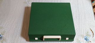 Máquina de escribir portátil Olympia Traveller de Luxe en color verde. Incluye su maletín de transporte. - Diseño compacto y robusto. - Teclado QWERTY con Ñ.