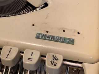 Original y atractiva máquina de escribir portátil ideal para usar o como decoración en ambientes de estilo Vintage. Está fabricada por la prestigiosa casa Olympia modelo Splendid 33 en el año 1960 made in western Germany. Conserva su maletín original para poder transportarla más cómodamente; parece funcionar correctamente. - Color blanco márfil y verde. - Maletín rígido incluido. - Teclado español con la letra ñ