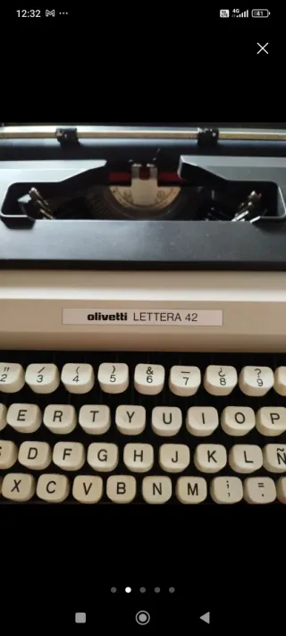 Máquina de escribir mecánica Olivetti Lettera 42. - Diseño clásico y funcional. - Teclado QWERTY con Ñ.