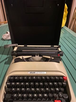 Máquina de escribir vintage. Oliveti lettera 32. En su propia funda. Mide 32'5 cm de ancho por 32'5 cm de largo por 9 cm de alto. Máquina está perfectamente cuidada y funciona correctamente. La funda está algo sucia de estar guardada abierta pero su estado es perfecto
