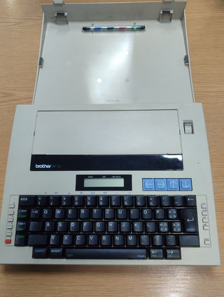 Máquina de escribir Brother BP-30, años 80. Funciona con 5 pilas gordas, desconozco si funciona, no probada. Exteriormente muy buen estado, fotos parte de la descripción.
